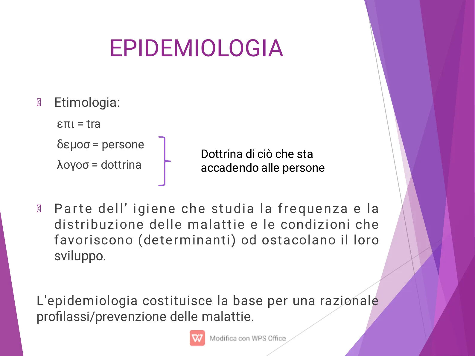 Modifica con WPS OfficeEPIDEMIOLOGIA Etimologia: ETL = tra δεμοσ = persone λογοσ = dottrina Dottrina di ciò che sta accadendo alle persone