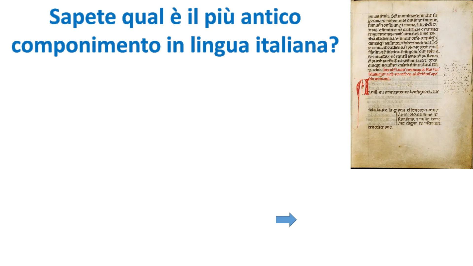 bums feruh. Scarumihıtas ofundit fu phim. goms homines quifunt îmunto. Anht gonna que i munw fift: Sca ca ntas. ofimdit ome diatoncas q carnaler temptationes. comf carnales timores. Sca otechenna: ofunch oms ampler? carnaler uolutater. Thatet mortificati co pus fi avolichenna fpe gavotechentia Av. fimundo. go tantű fous lőibs. fr etias nibus leftus ofenf. ut point facere de eo qurcqo noluint quatu fuit ers mati cefa Radno. Japuie Lauder creaturay a's feat beat fiabout to laure llonore del cu cet ifirmapo' Coin damianu. Altrimu ompotente bonnignore. tue 2.66.) fole laure la gloria elhonore zonne Lote foloaltiftimo fe Ronfano, omillu homo Rufene cignu te metonare: benedictione.Ma chi ha scritto il Cantico delle Creature? METTI INSIEME GLI INDIZI E LO SCOPRIRAI