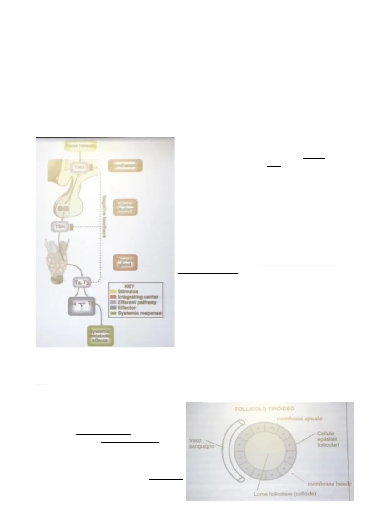 Il TRH (peptide formato da soli 3 aa) si lega a recettori dell'ipofisi anteriore (adenoipofisi) accoppia-ti ad adenilato cicali che producono cAMP, il TSH rilasciato si lega anch'esso a recettori accoppiatiad adenilato ciclasi sulla tiroide che stimola la secrezione di T3 e T4. Importante è il meccanismo a feedback-negativo sia sulla secrezione di TSH ma anche sulla secrezione di TRH.