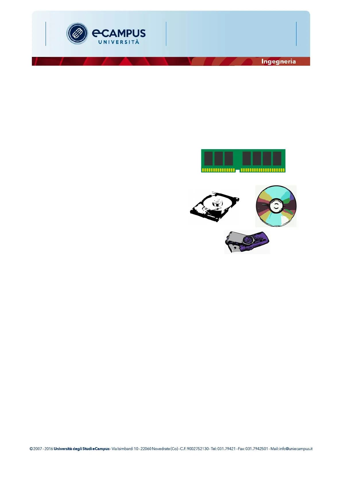 Corso di Laurea: Ingegneria Informatica Insegnamento: Fondamenti di Informatica Numero lezione: 5 Titolo: Memoria Ingegneria Fondamenti di Informatica Memoria Prof. Giuseppe Tradigo giuseppe.tradigo@uniecampus.it