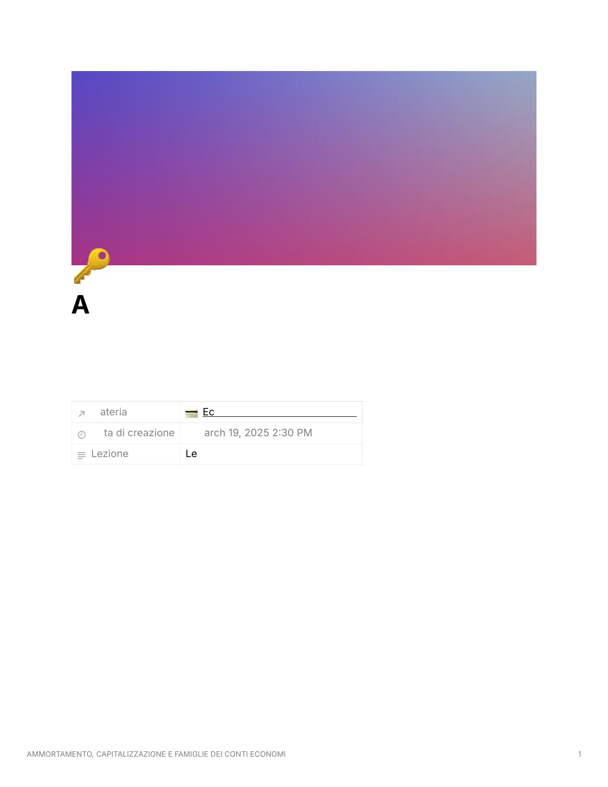 AMMORTAMENTO, CAPITALIZZAZIONE E FAMIGLIE DEI CONTI ECONOMI 7 Materia Economia Aziendale II Semestre · Data di creazione @March 19, 2025 2:30 PM