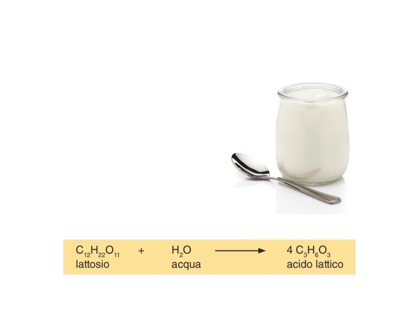 C12H2011 lattosio + H2O acqua 4 C3H6O3 acido lattico