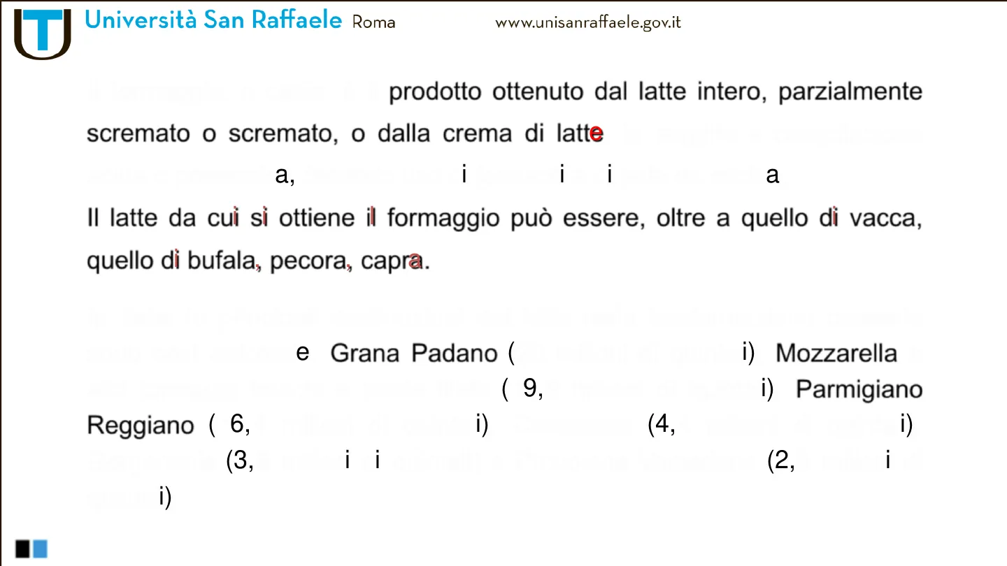 Università San Raffaele Roma www.unisanraffaele.gov.it Insegnamento Nutrizione a livello degli alimenti: chimica e tecnologie di produzione Professore Ing. Lucia Irene Bailetti Argomento Latte e Latticini: FormaggioT Università San Raffaele Roma www.unisanraffaele.gov.it Prof.ssa Lucia Bailetti