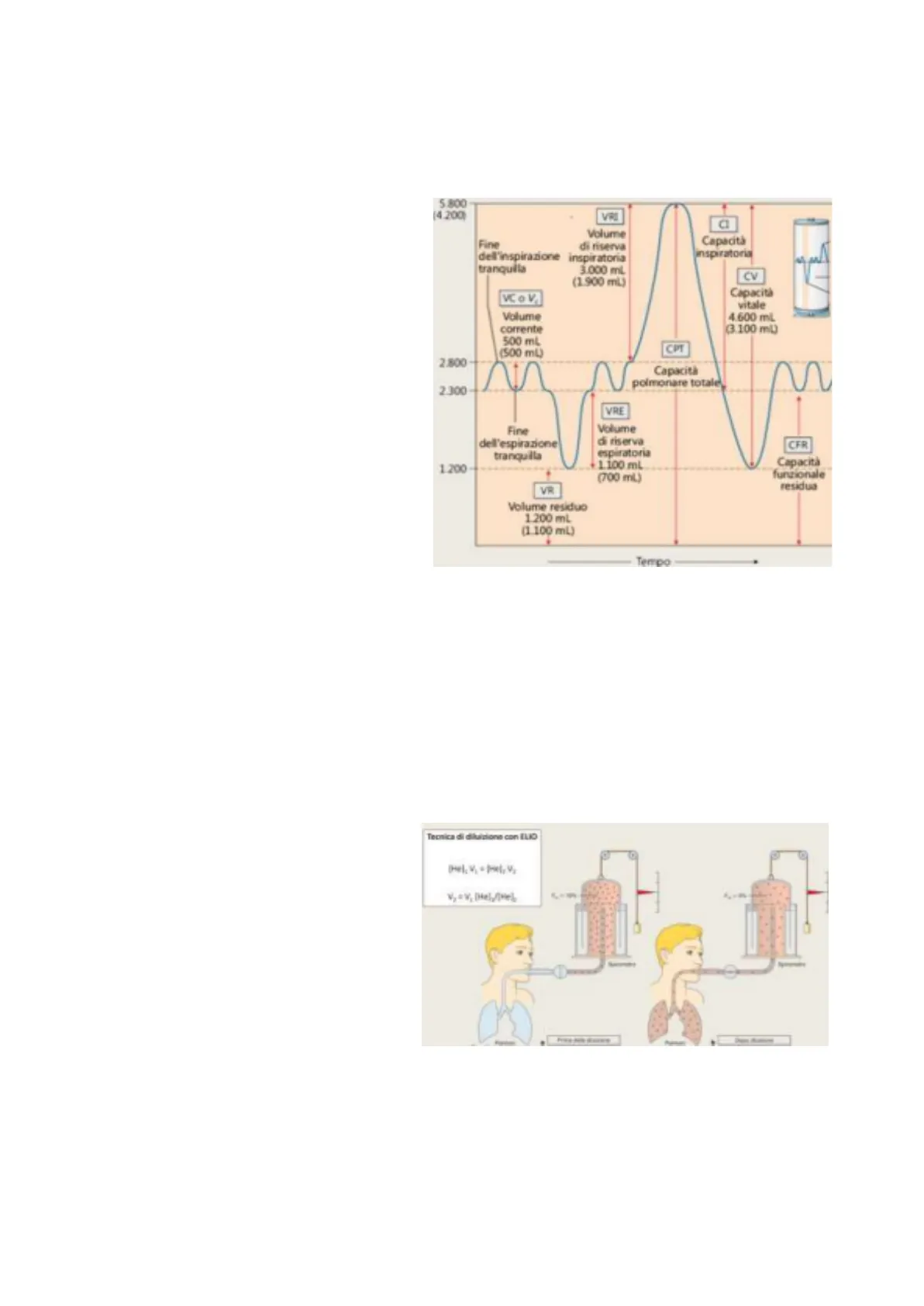 Tecnica di diluizione con ILIO [Hel, V. - PHel, Va V2 = V, [Help/Hel · Diluizione con elio (He): conoscendo la concentrazione di elio iniziale ([He]1) e il volume (V1), consentendo la diluizione di questa quantità di gas con i volumi polmonari del soggetto, posso calcolare la concentrazione al termine del test. Questa avrà un valore più basso rispetto a quello iniziale perché la % di elio si è diluita in un volume maggiore (V2 = V1 + Vpolmonare). Dalla capacità polmonare totale tolgo la capacità vitale misurata con lo spirometro e rimane il volume residuo. Il test tiene conto anche di altre caratteristiche quali solubilità e diffusione dei gas.