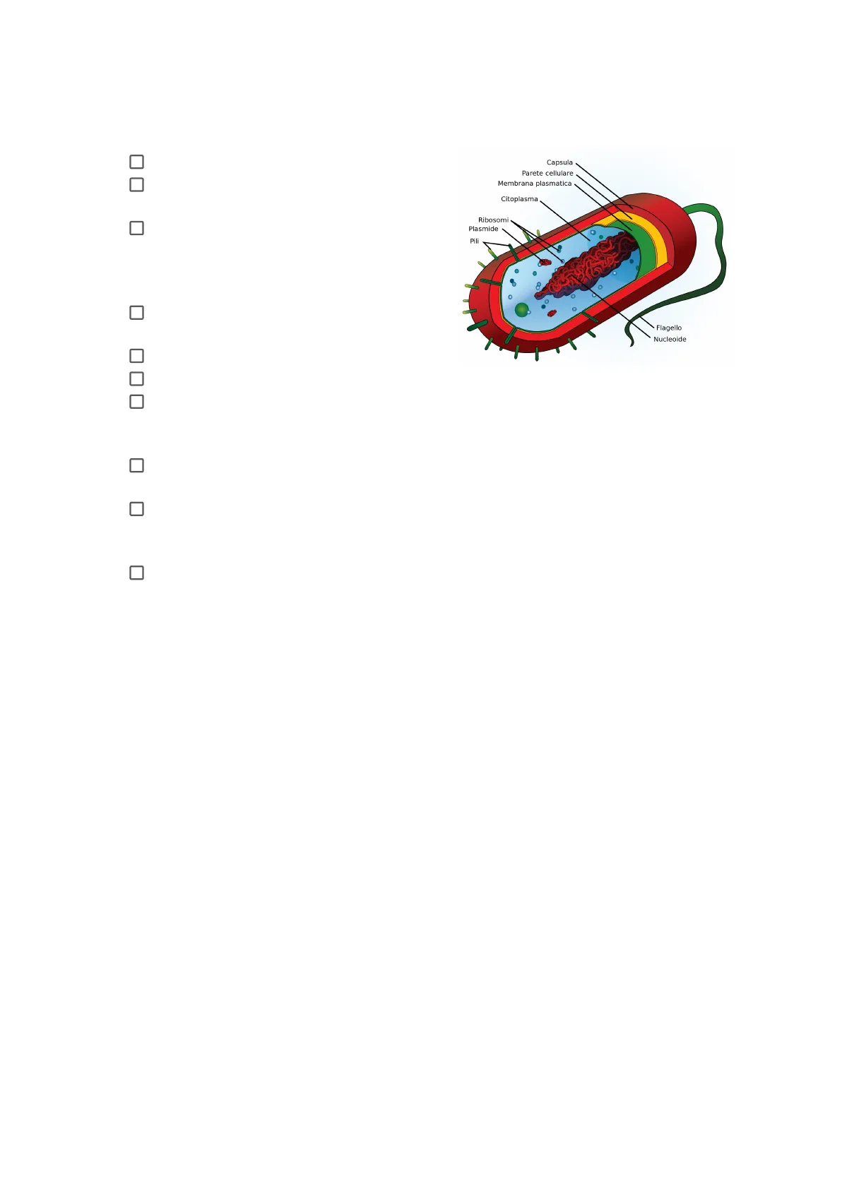 -> i batteri sono fondamentali poiché hanno un ruolo ecologico partecipando alla degradazione della sostanza organica e nel permettono il riciclo nelle catene alimentari => non tutti i batteri sono patogeni per l'uomo in alcuni procarioti è presente una membrana esterna strato ricco di fosfolipidi e carboidrati non ha funzioni protettive ma può contenere tossine responsabili di processi patogeni. -> in alcuni procarioti sono presenti i flagelli => semplici strutture filamentose utilizzate per spostarsi nell'ambiente. Sono tubi elicoidali formati dalla proteina flagellina, il cui movimento è alimentato da un gradiente protonico.