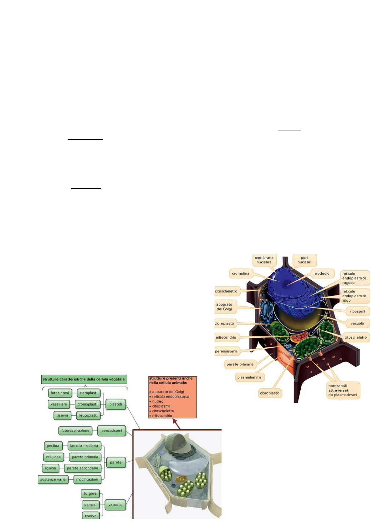 strutture caratteristiche della cellula vegetale strutture presenti anche nella cellula animale: fotosintesi cloroplasti · reticolo endoplasmico · nucleo vessillare cromoplasti plastidi · citoplasma · citoscheletro riserva leucoplasti · mitocondrio fotorespirazione perossisomi pectina lamella mediana cellulosa parete primaria parete lignina parete secondaria sostanze varie modificazioni turgore osmosi vacuolo riserva membrana nucleare pori nucleari cromatina nucleolo reticolo endoplasmico rugoso citoscheletro reticolo endoplasmico liscio apparato del Golgi ribosomi cloroplasto vacuolo mitocondrio citoscheletro perossisoma parete primaria plasmalemma · apparato del Golgi cloroplasto porocanali attraversati da plasmodesmi