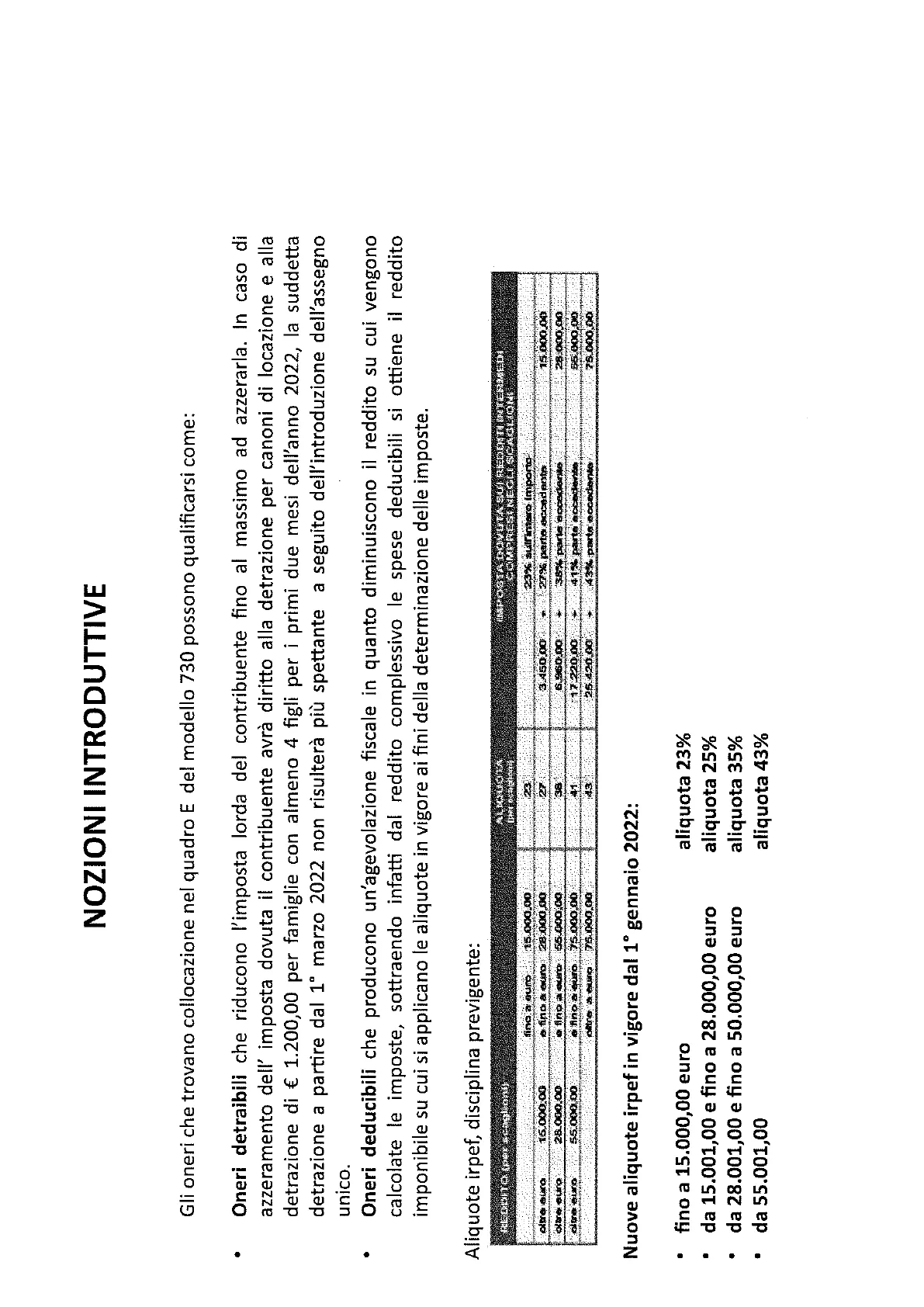 Aliquote irpef, disciplina previgente: